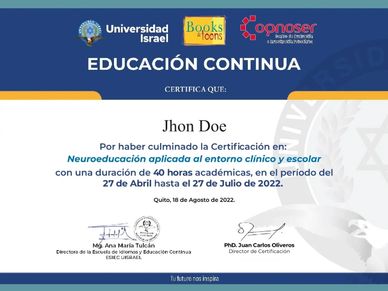 Enseñar como la Neurociencia cognitiva enriquece la práctica Docente y favorece el aprendizaje en los estudiantes. Durante 120 horas académicas, abordaremos temas claves como la atención, la función ejecutiva y la concentración, así como la plasticidad cerebral, el aprendizaje, la memoria y técnicas de enseñanza ligadas a un aprendizaje activo. Esta es la oportunidad que has estado esperando para marcar una diferencia significativa en la vida de tus alumnos, en tu propia carrera y en tu aprendizaje continuo. ¡No te lo pierdas!