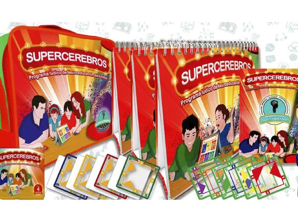 Es el programa lúdico de entrenamiento cerebral más completo y revolucionario para niños, jóvenes y adultos. Incluye: Un lujoso y práctico maletín, tres tomos con más de 300 actividades, un mazo de cartas para cuatro participantes, un reloj de arena y un manual para padres y maestros.